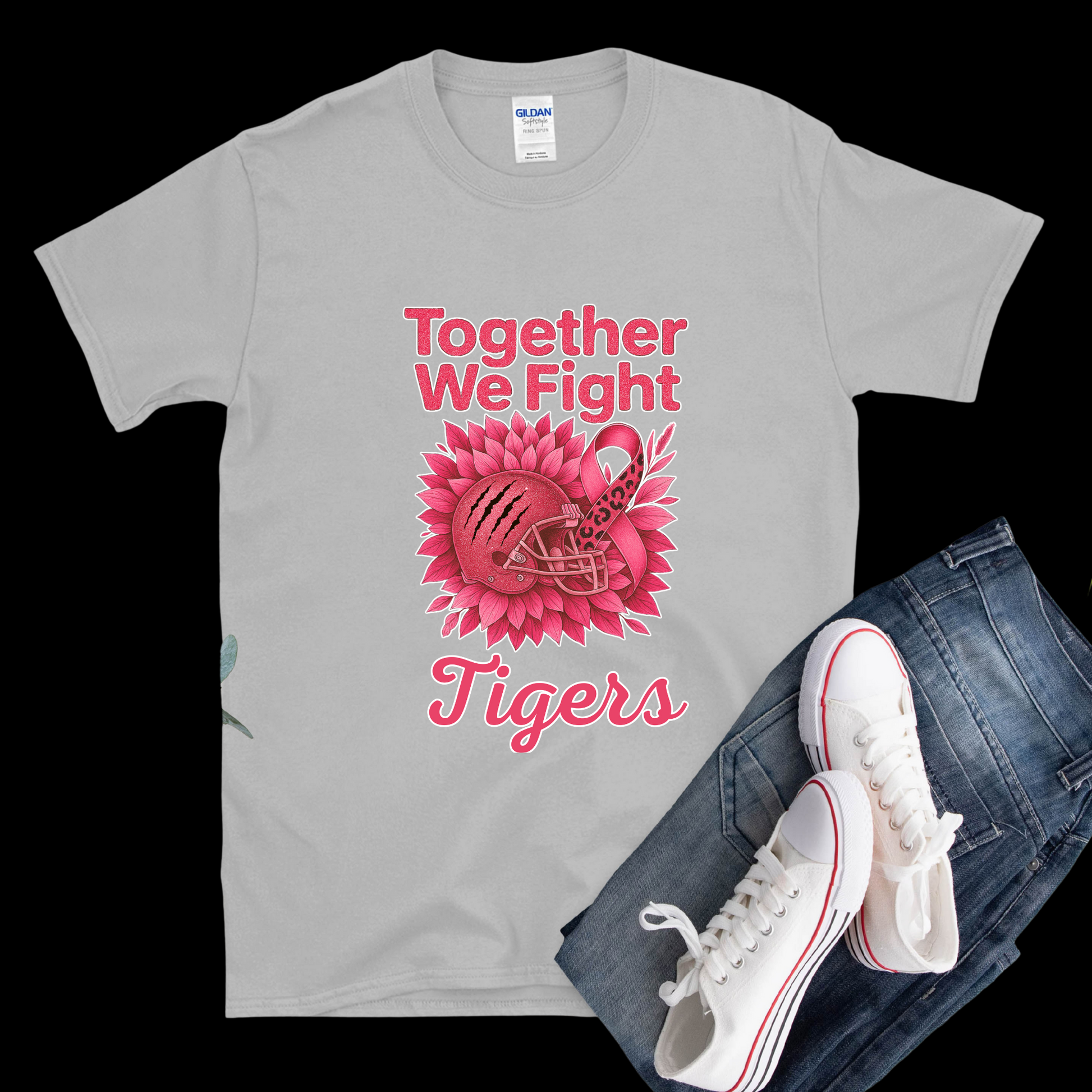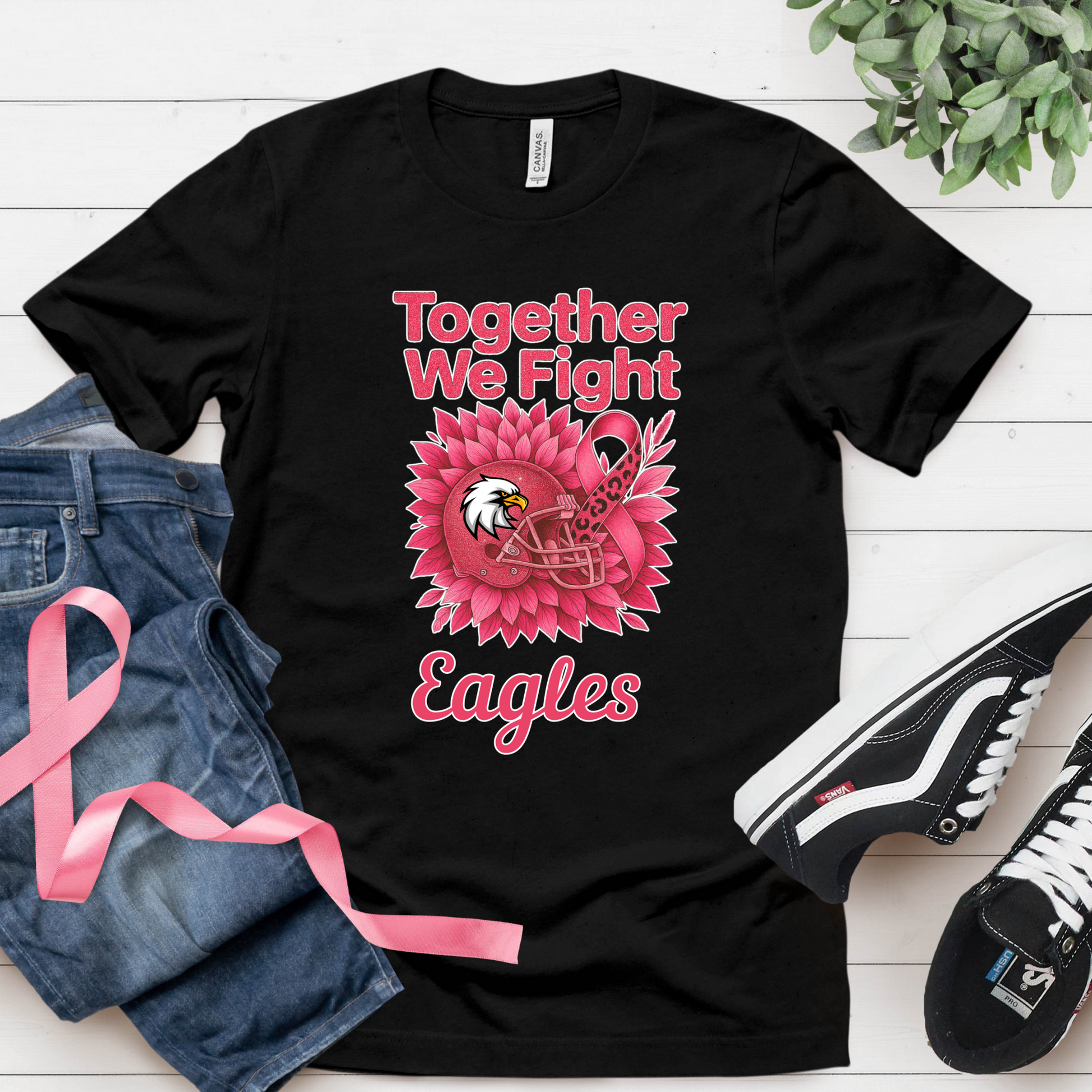 Custom Pink Ribbon Football Tee: Together We Fight - Custom Mascot