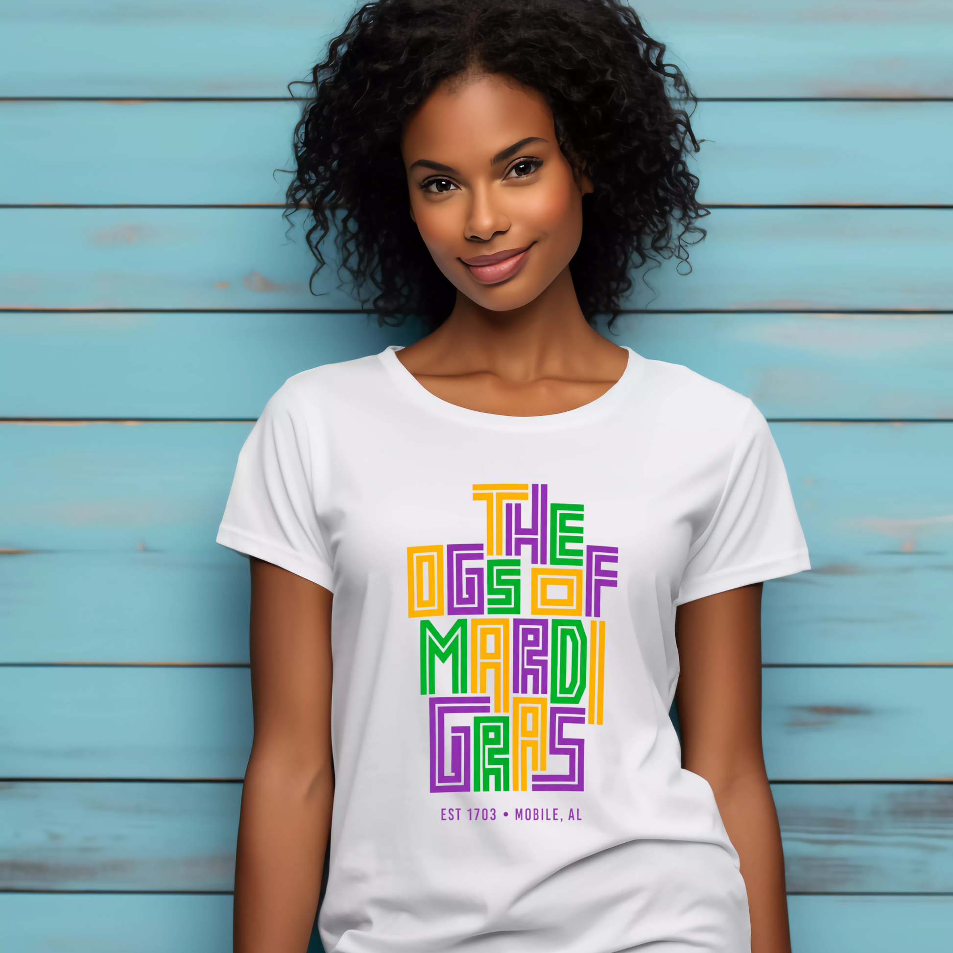 Show your true Mobile pride, whether you're catching beads on Government Street or just celebrating Fat Tuesday from afar! This festive design captures the energy and color of the annual Carnival Parade with all the purple, green, and gold flair.